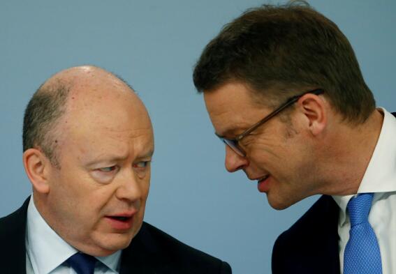 德銀提升副CEO澤溫(右)轉正,取代克賴恩(左)。圖為二人今年2月時出席公司年度新聞發布會。 路透社