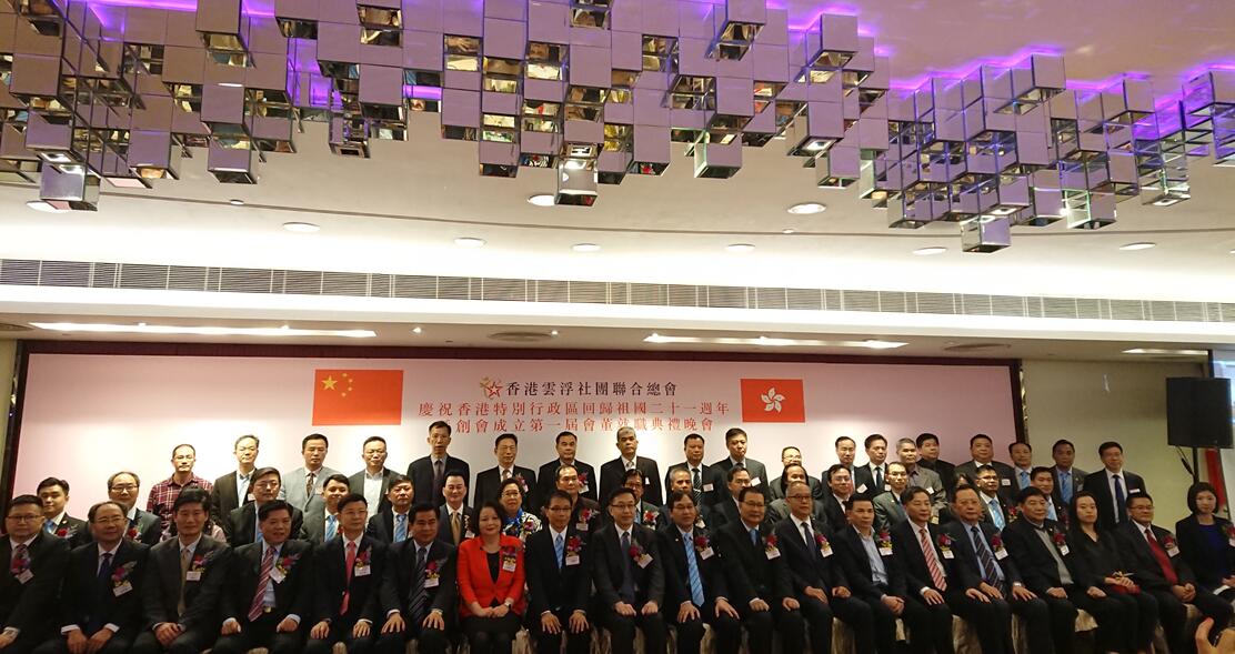 香港雲浮社團聯合總會慶祝第一屆會董就職典禮晚會宾主合影。