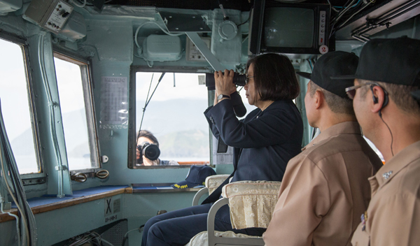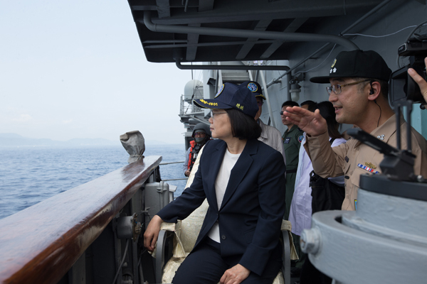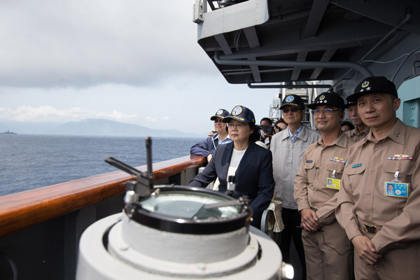 【香港商報网訊】蔡英文昨早到海軍蘇澳基地測考台軍應變能力,并首次登艦出海,視導海軍「戰備抽測」聯合操演。不過,此次聯合操演采用「實兵不實彈」,全程采取模擬作戰方式,完全沒有一發實彈。另外,台軍號稱出動20艘軍艦接受檢閱,但有9艘是導彈快艇,其餘大部分均屬服役數十年的破舊軍艦。怪不得網友調侃,「蔡省長」這是強行作秀。