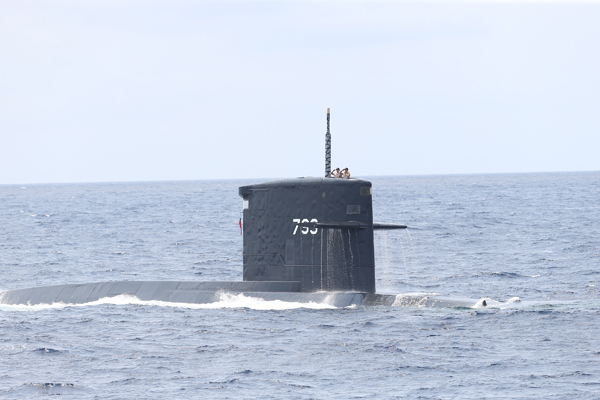 劍龍級「海龍號」潜艇浮上水面后,艦長向蔡英文行禮。中央社