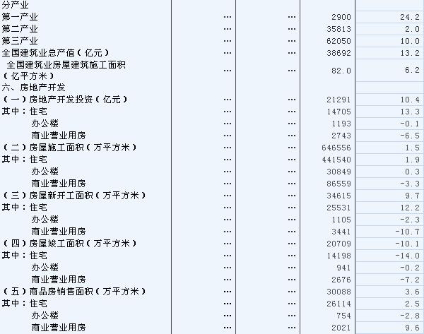 一季度,全国房地产开发投资21291亿元,同比增长10.4%,增速比1-2月份加快0.5个百分点,比上年同期加快1.3个百分点,其中住宅投资增长13.3%。房屋新开工面积34615万平方米,同比增长9.7%,其中住宅新开工面积增长12.2%。全国商品房销售面积30088万平方米,增长3.6%,其中住宅销售面积增长2.5%。全国商品房销售额25597亿元,增长10.4%,其中住宅销售额增长11.4%。房地产开发企业土地购置面积3802万平方米,同比增长0.5%。3月末,全国商品房待售面积57329万平方米,比上月末减少1138万平方米。一季度,房地产开发企业到位资金36770亿元,同比增长3.1%。