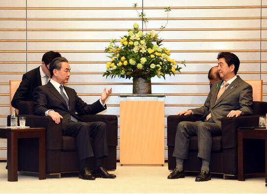 王毅表示,中日互为重要邻国。近年来两国关系历经波折,各领域交流合作受到影响。首相先生去年以来多次就改善中日关系发出积极信息,中方对此予以重视。希望在双方共同努力下,此次应邀访日能够成为两国关系重回正常轨道的重要一步。中日关系改善势头来之不易,值得珍惜。只要把中日关系改善好、稳定住,双方就可以开展更密切的交往和更广泛的合作,这符合两国人民和地区各国的共同利益。为此,要严格遵循中日四个政治文件确定的各项原则,妥善处理涉及两国关系政治基础的敏感问题,把互为合作伙伴、互不构成威胁的共识落到实处,并使之成为日本社会各界的共识。要挖掘经贸合作新动能,实现中日经贸关系在新起点上提质升级。中方重视首相先生就“一带一路”建设作出的积极表态,日方参与共建“一带一路”将为中日经济合作开辟新的空间。我们愿同日方探讨参与的适当方式和具体途径。双方要加强沟通协调,反对保护主义,维护以世界贸易组织为核心的全球自由贸易体系,构建开放型世界经济。
