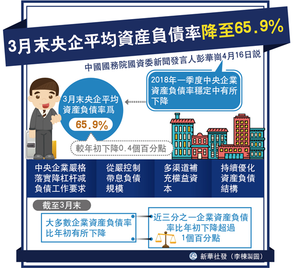值得注意的是,今年一季度中央企業資產負債率穩定中有所下降,3月末央企平均資產負債率為65.9%,較年初下降0.4個百分點。