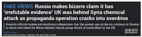太阳报:俄方有“确凿证据”来证明,杜马镇疑似化武事件背后由英方参与策划