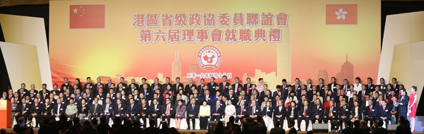 港區省級政協委員聯誼會日前假香港會展中心隆重舉行第六屆理事會就職典禮,賓主大合照。記者崔俊良攝