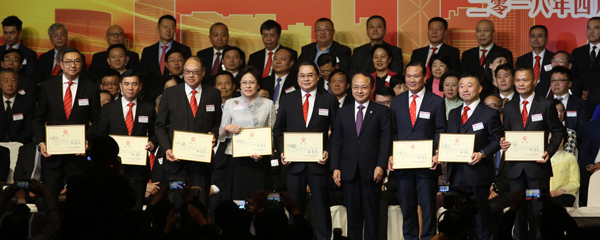 其后,梁振英為第五屆理事會領導頒發名譽證書;林鄭月娥為該會主席鄭翔玲、會長施榮懷、常務副會長余鵬春、李德麟、張學修、朱銘泉頒發證書;王志民為該會副會長頒發證書;蘇波、謝鋒分別為該會秘書長等理事會成員頒發證書。