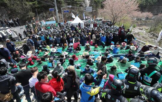 12日,韩国军方强行进入“萨德”基地,警民发生冲突