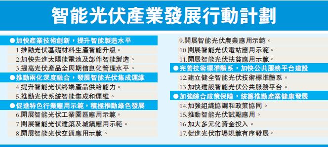 【香港商報網訊】據內媒昨日消息,工信部等六部門已聯合印發《智能光伏產業發展行動計劃(2018-2020年)》。計劃提出,光伏產業是基於半導體技術和新能源需求而興起的朝陽產業,是未來全球先進產業競爭的制高點。將推動光伏從基礎材料生產智能升級,加快先進太陽能電池及部件智能制造,提升智能光伏終端產品供給能力,推動光伏系統智能集成和運維。