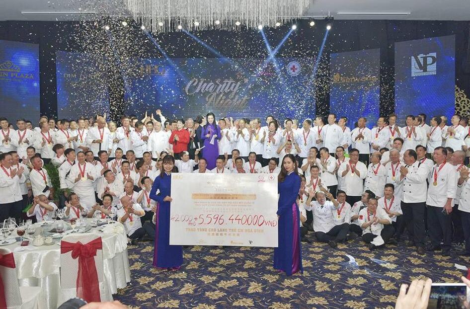 【香港商報网訊】記者余江強報道:國際名廚慈善會主辦的「2018國際名廚胡志明市慈善夜」於日前假胡志明市皇潮宴會酒樓順利完成,來自新加坡、馬來西亞、香港、台灣、澳洲、中國、美國、澳門、韓國和越南等地300位中廚師投入參與,晚宴共籌得約港幣190多萬元,另現場拍賣活動籌得約港幣476800元,所得款項全部捐予胡志明市紅十字會,主要是幫助慈裕醫院和平村受越戰時美軍施放落葉劑造成遺害的小朋友。