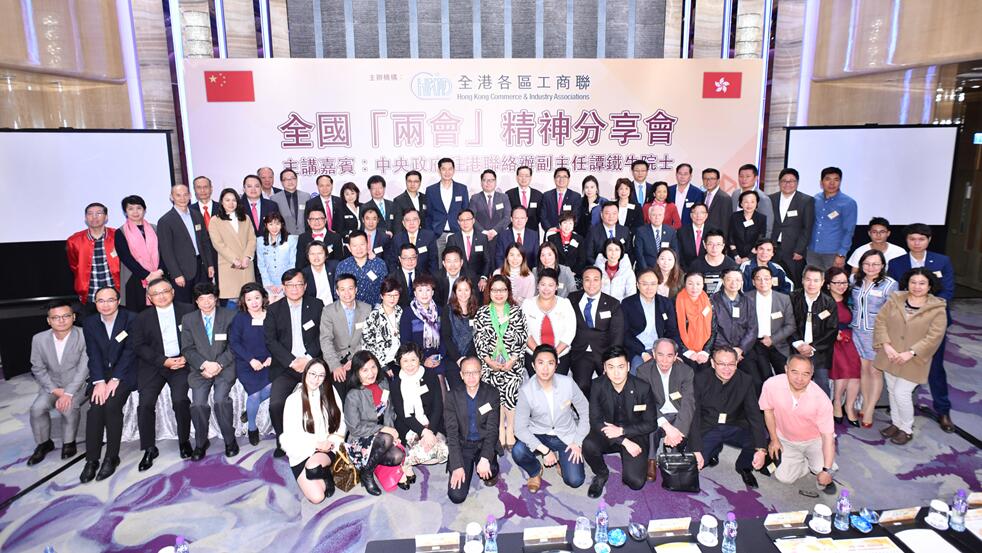 【香港商報网訊】記者盧慧萍報道:港各區工商聯日前假帝京酒店,舉行全國兩會精神分享會。中聯辦副主任譚鐵牛、全港各區工商聯會長盧錦欽擔任主講嘉賓,現場為全港各區工商聯15個成員會會員逾百人出席,共同學習兩會精神,氣氛熱烈。