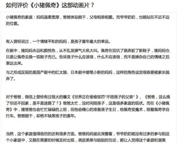 他認為,《小豬佩奇》最大的成功是“塑造了一個完整的家庭關系,提供了一種最讓人認同的家庭模式。”
