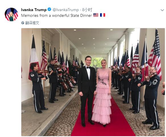 当晚,伊万卡还在社交媒体上分享了她和贾里德·库什纳的照片,并配文称“国宴上的美好回忆”,看起来心情很是不错。