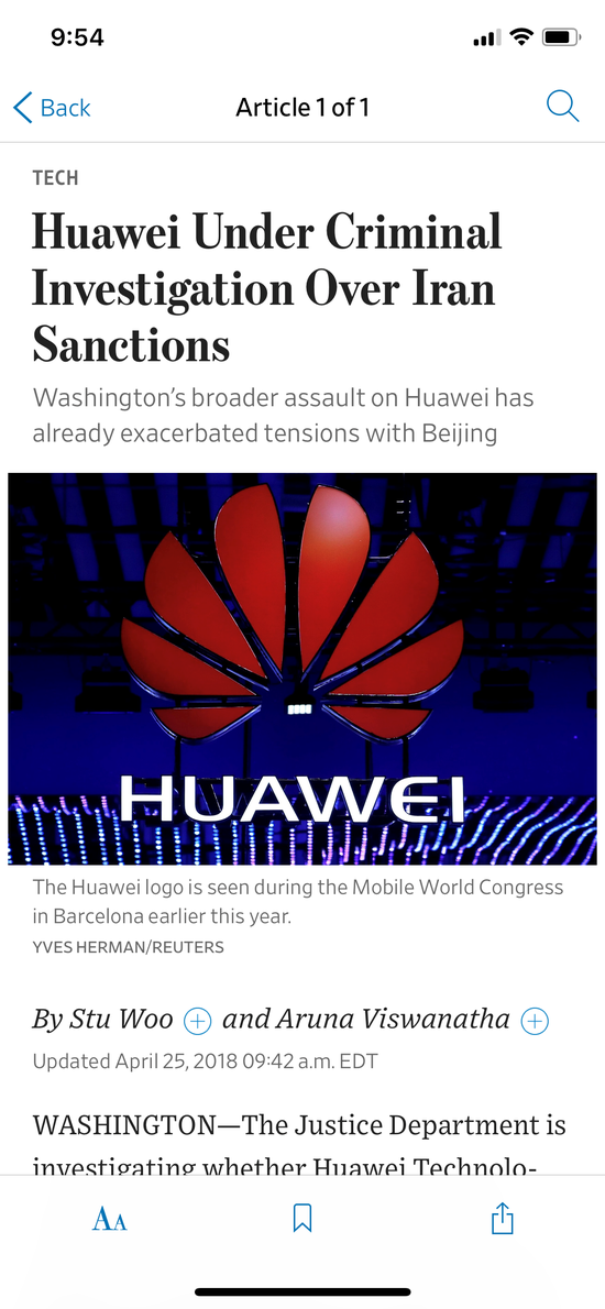 每日经济新闻记者注意到,纽约时报去年早些时候曾报道称,美国财政部早在2016年12月就向华为发出了行政传票,指控华为涉嫌违反制裁。