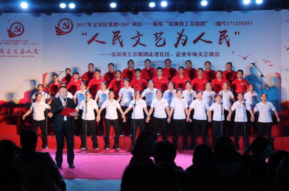 如今,青工合唱团有共产党员13人,且全体团员均是宝安义工。形成了以共产党员为骨干,以“奏响党音,传递党声”为宗旨的“红团”,仅近半年多时间,他们就深入企业和社区开展10场专场演出活动,直接受益观众达12500人,以文艺汇演方式歌颂祖国秀丽山河、党的政策、深圳发展历史等,使得项目焕发出新的活力,使深圳党员群众对党的政策精神领悟更加深刻,更增加了外地来深建设者对深圳的归属感、认同感。