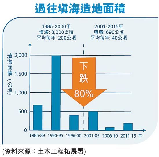 2001年后15年填海造地跌八成