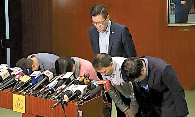 民主党5名立法会议员就事件向公众鞠躬道歉