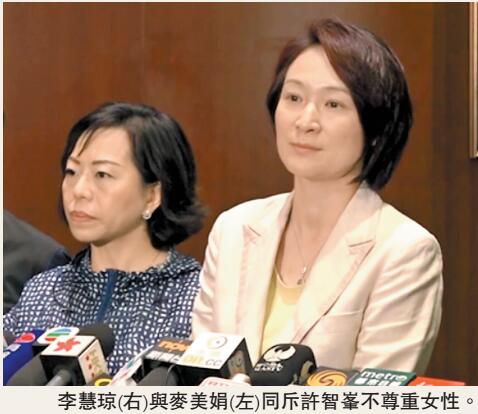 工聯會立法會議員麥美娟形容,許智峯的行為絕對不尊重女性。