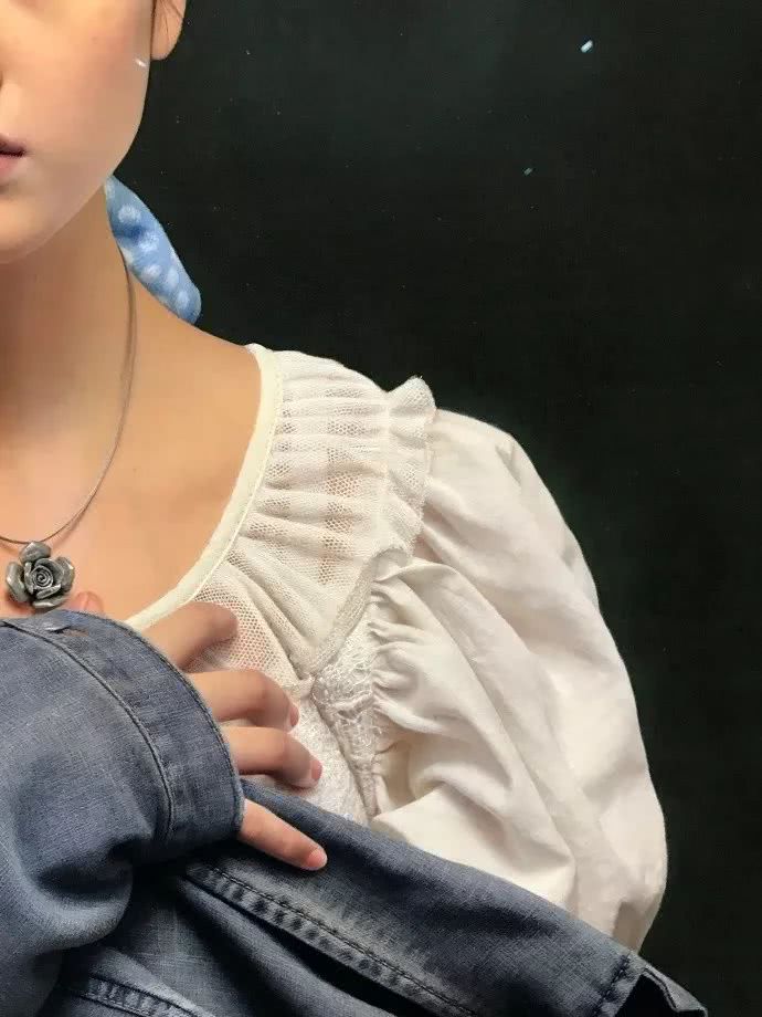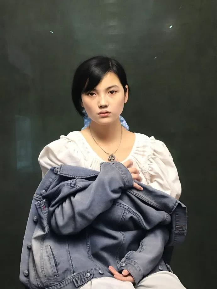 纖細的毛衣絲線和毛發,頷首凝目的女孩……這不是鏡頭前的真人,而是一幅油畫。