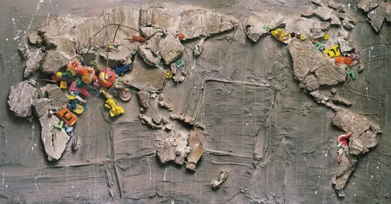 在《世紀風景之三》中,稚弱的兒童玩具被一片工業瓦礫包圍,這樣的構思承載著作者的情感。