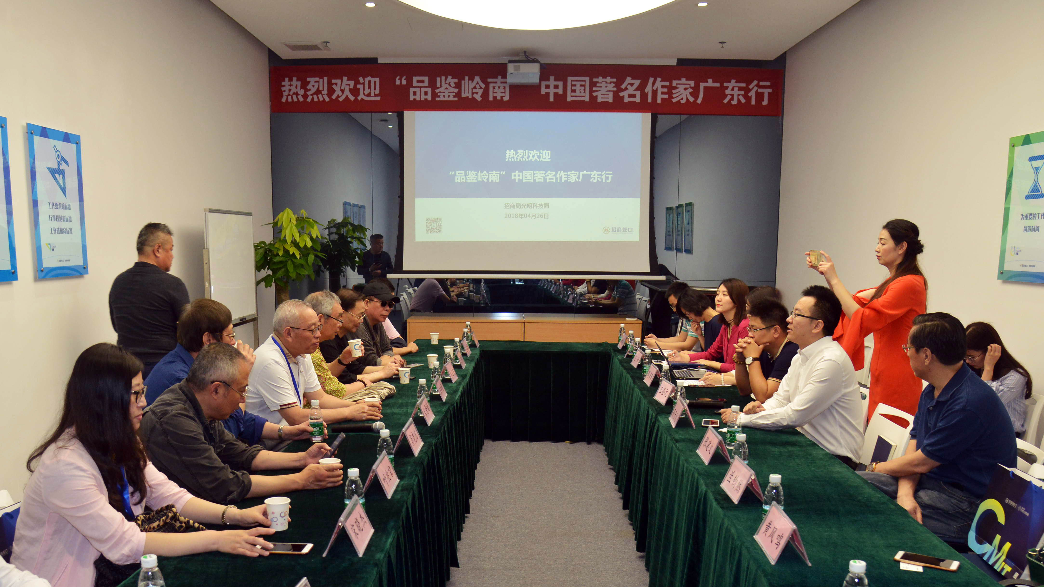 【香港商报网讯】记者黄凤鸣报道:4月26日,由《香港商报》组织的第九届“品鉴岭南”中国著名作家广东行采风团,走进深圳光明新区,参观了招商局智慧城,并与招商局光明科技园有限公司的员工及文学粉丝们进行了交流互动。随后参观了光明烙画基地,作家们有感而发,纷纷留下墨宝,流露赞誉之情。