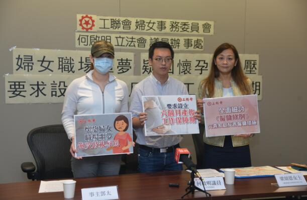雖然政府一直提倡釋放婦女勞動力,但工聯會立法會議員何啟明表示,現行《僱傭條例》並未有效保障在職婦女的權益,有關保障懷孕僱員的條文更是非常落後。他指,國際勞工組織建議產假應為期最少14周,但香港的10周產假以維持了48年不變,而產假支薪的比率由僱員工資的五分二提高至五分四的修訂亦已有23年之久,故要求設立「產後工作保障期」至產假後6個月,以保障婦女的權益。