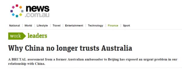 “為何中國不再信任澳大利亞?”面對日益緊張的澳大利亞與中國關系,澳大利亞新聞網5月1日在文章中提出了這個疑問。