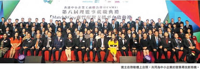 【香港商報网訊】記者郭天琪報道:香港中小企業工商聯合會(FCSME)第八屆理監事就職典禮暨首個「一帶一路」商貿配對支援平台「Match&Go」啟動禮,日前假九龍灣國際展貿中心舉行,商務及經濟發展局副局長陳百里,中聯辦經濟部處長黃衛挺、台務部處長朱峰等蒞臨主禮,譚耀泉榮膺會董會主席,鄭綺文榮膺理事會會長。政商賢達逾千人共同見證啟動禮,共同為中小企業的發展尋找新商機。