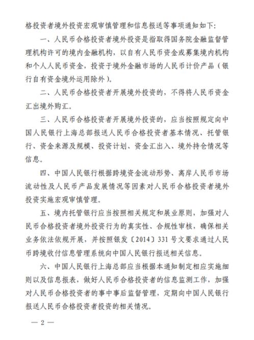 四、中国人民银行根据跨境资金流动形势、离岸人民币市场流动性及人民币产品发展情况等因素对人民币合格投资者境外投资实施宏观审慎管理。