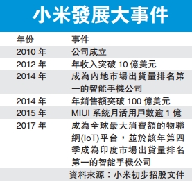 小米又在初步招股文件提及有關可能發生的貿易戰風險。小米指,其出口產品必須符合不同司法區域法律規定,又提醒投資者,日后可能遭到與遵守政府經濟制裁法律相關的強制行動,所產生的處罰及費用,將會對業務和經營業績造成重大影響。
