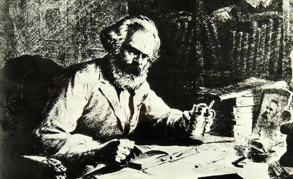 笔者曾看过他的几页手稿的照片。每一页手稿都被纵向分成两栏。左面一栏的书写者是他的亲密战友恩格斯,也是巨人。字体工整漂亮,以一个角度倾斜着,罕有涂改,如同印刷。右面一栏的书写者是他。字迹间总有涂鸦。他经常在属于他那一栏里画小人,那个类似希腊雕塑的头像据说是在画费尔巴哈,那个带着小丑帽下巴尖尖的半身像据说是莫泽斯·赫斯。这部手稿至关重要,被称作唯物史观宏观图景的理论勾勒。很多人读过很多遍,都认为所言不虚,只会比定义的更重要。