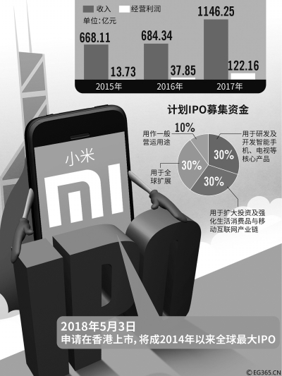 号称五年不上市的小米集团昨天向港交所递交上市申请。根据招股说明书,外界预料募资规模至少在100亿美元,最快6月底至7月初挂牌,估值有望超过700亿美元,成为自2014年以来全球最大规模IPO。最近,市场还接连传出蚂蚁金服、美团点评、腾讯音乐、滴滴出行等科技巨头筹备首次公开募股(IPO)的消息,这意味着持续多年的BAT互联网格局很快会被改写。