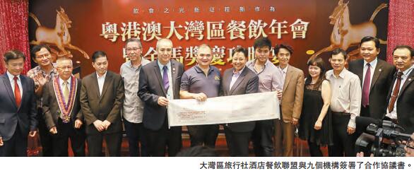 【香港商報网訊】記者余江強報道:粵港澳大灣區餐飲年會主辦金馬獎慶功晚宴,日前假荃灣半島漁港舉行,主禮嘉賓有立法會旅游業界議員姚思榮,亞太酒店協會主席冼鋒,中聯辦協調部處長張權、副處長陳隆秀,聯合國開發計劃署官員亞太地區代表林家強等,先后為第18屆中國飯店金馬獎得獎的個人、餐飲機構、供應商頒發獎項。來自粵港澳三地的300多位餐飲同業共聚一堂,同申慶賀,場面熱鬧。