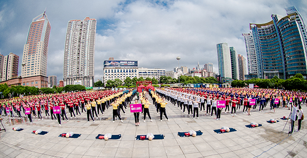 身边有人突然倒地,此时的你该如何反应?能否把握抢救生命的黄金时间,在救护车到来前正确施救?5月6日,第107个国际护士节前夕,来自湖南省26家单位的1000名护士组成25个方阵聚集长沙贺龙体育广场,齐跳《“救”在身边》急救操,开展急救普及公益宣教活动,以这种方式倡议全社会关注和参与急救普及,提高公众的急救意识和自救互救能力。