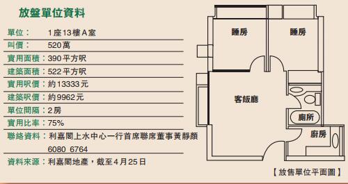 今期介紹「上水名都」1座13樓A室放售單位,業主叫價520萬元,以實用面積390平方呎計算,實用呎價約13333元。單位內部間隔,兩房一廳,建築面積522呎,實用比率75%。朝向方面,A室位於東北位,單位採長廳、眼鏡房設計,由於無走廊位及玄關位,故間隔相當實用,6樓以上單位設有花槽。全屋在4年前經過裝修翻新,因此整體上狀態不錯。
