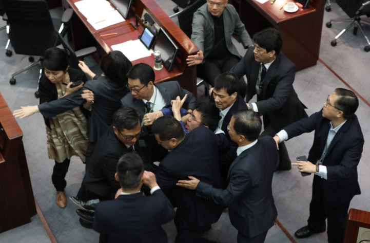 反對派議員昨日再度在一地兩檢條例草案委員會會議上發難搗亂,當中區諾軒更涉嫌拗傷保安人員手指。立法會主席梁君彥昨強調,行管會有責任提供安全工作環境予立法會人員,立法會特權法規定,任何人妨礙立法會人員執行職責就是違法。