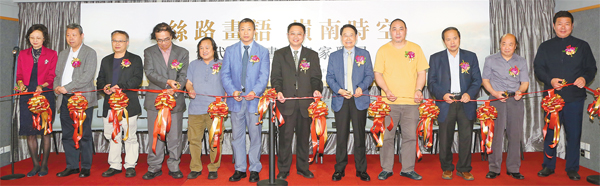 出席開幕儀式的嘉賓包括中聯辦宣傳文體部副部長朱挺、香港美協主席蕭暉榮、香港新聞工作者聯會執行主席劉偉忠、香港油畫研究會會長林鳴崗、嶺南畫派承傳人劉致遠、香港文化藝術交流協會主席韋勁敏等。蕭暉榮在致辭時表示,絲綢之路不僅是民族記憶,也是當代中國發展的重要主題。所以,五位畫家以他們的書法和畫作為大家展現了美妙的絲路世界,以表達對「一帶一路」這個戰略的衷心赞頌。