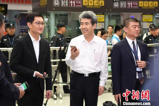 此间,深圳市委常委、常务副市长刘庆生,深圳市地铁集团有限公司董事长辛杰,腾讯公司控股董事会主席兼首席执行官马化腾,香港铁路有限公司常务总监金泽培等在福田地铁站体验手机扫码过闸。