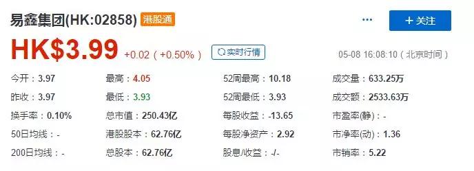 上市以来,易鑫集团几乎没有迎来过持续上涨行情,最新收盘价3.99港元,较发行价格跌去48%,更不足最高价的40%。