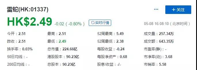 雷蛇以3.88港元发行,上市当日以5.12港元高开,但最终上市即下跌,以4.58港元收盘。此后其股价同样一路走低,今日收盘价2.49港元,接近其上市以来最低价。