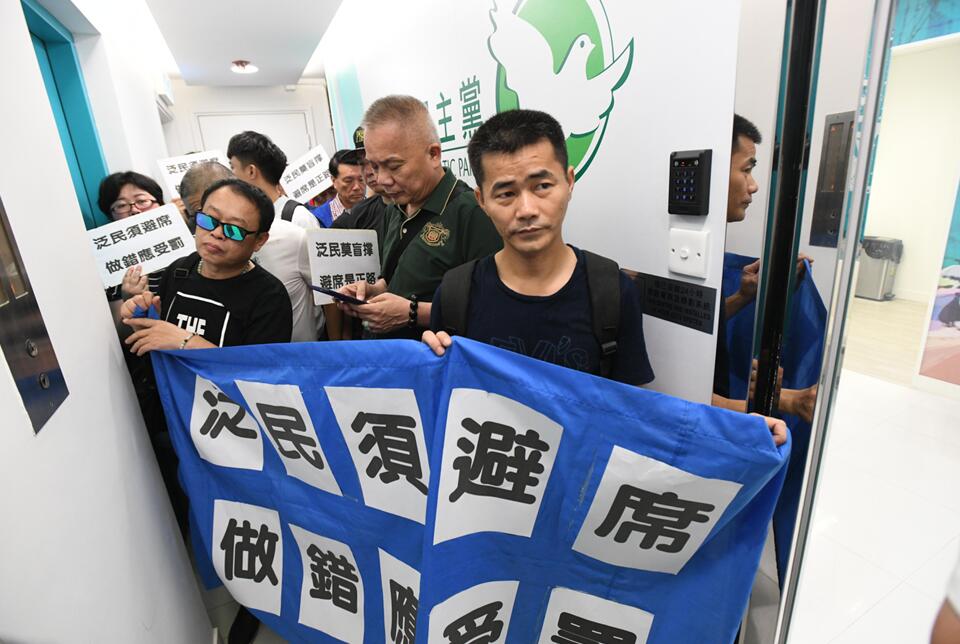【香港商報网訊】約20名市民昨下午手持橫額前往民主黨位於太子恆利商業大廈的總部請願(圖),就該黨議員許智峯早前在立法會強搶政府女職員手機一事,要求民主黨開除許智峯黨籍。