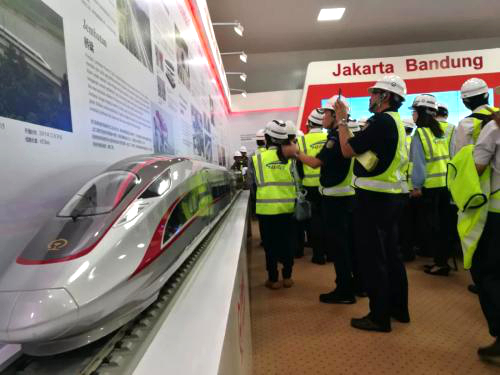 雅萬高鐵展示廳里擠滿了前來參觀的中印尼各界人士。