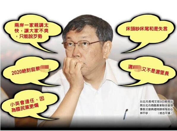柯文哲还承诺,自己若顺利连任台北市长,2020年会力挺蔡英文,不会出来选“总统”。