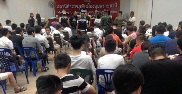 5月9日,泰国乌汶府当地警察、旅游警察以及相关工作人员接到当地民众举报称,发现在附近地区某3层楼房中集聚众多中国籍男女青年,且看到有人时刻守在电脑前,认为他们行为可疑。