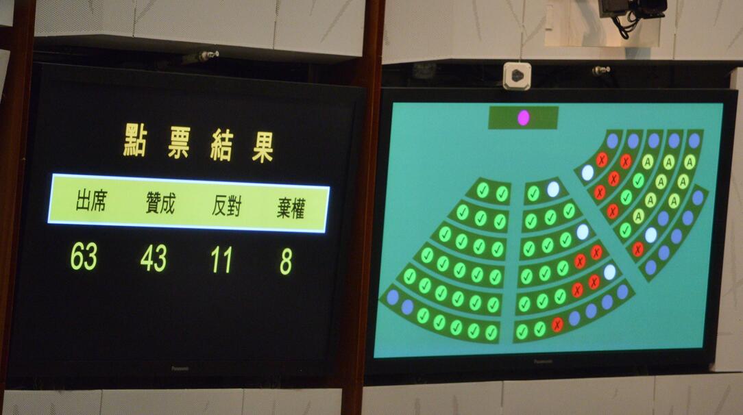 立法會通過《2018年撥款條例草案》。圖為點票結果。記者 蔡啟文攝