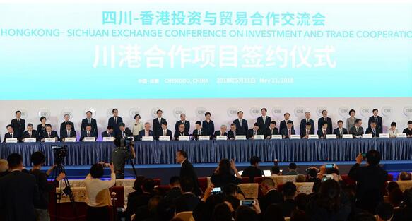 「四川——香港投資與貿易合作交流會」暨港合作項目簽署及啟動儀式今日(11日)在成都舉行,川港两地签署29个合作项目,包括港铁与成都地铁,以及机管局和四川机场的合作。林郑月娥会见证签署川港合作项目。