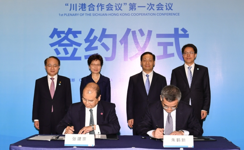 行政長官林鄭月娥、國務院港澳辦主任張曉明、中聯辦主任王志民、四川省委書記彭清華,出席川港高層會晤暨川港合作會議第一次會議,并見證協議和備忘錄簽署。四川省副省長朱鶴新、政務司司長張建宗分別代表四川省政府和香港特區政府簽署《川港合作會議合作機制安排》和《川港高層會晤暨川港合作會議第一次會議備忘錄》。