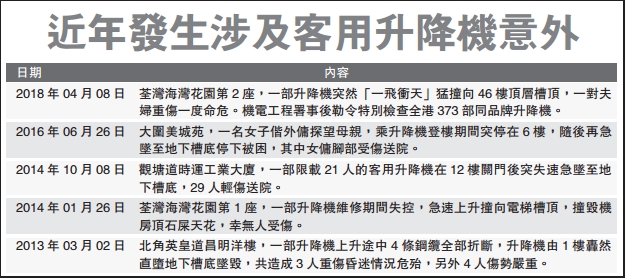 【香港商報网訊】記者萬家成報道:母親節前夕,上水一屋苑驚現攞命升降機,大廈一名64歲母親昨午離家擬乘搭升降機落樓時,懷疑升降機發生故障,當死者踏入升降機一刻,升降機突然急升,將她右腳夾住,先扯上7至8樓間,再跌落升降機槽底喪生,直至維修人員到場檢查時始揭發事件。機電署長薛永恒晚上到場視察后表示,涉事升降機是機箱不正常移動,正調查原因,為審慎起見,署方人員會通宵檢查屋苑其他9部升降機,期望盡快完成。住戶暫時須使用樓梯上落。