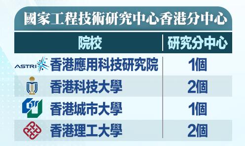 香港有多個國家工程技術研究中心及國家重點實驗室,具有發展創科的良好條件。這些研究中心和實驗室都位於哪些研究機構,一圖告訴你。