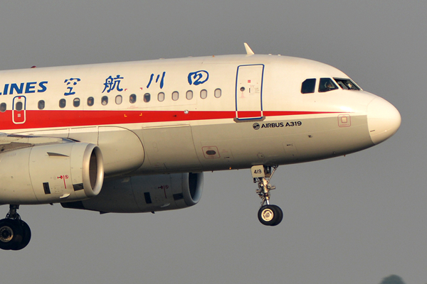 昨日發生故障後準備降落成都雙流國際機場的川航3U8633。新華社