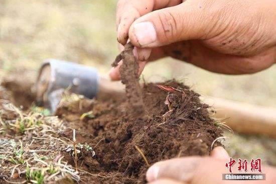 海拔4480米的苏鲁乡是杂多县冬虫夏草丰产区。据当地“80后”牧民索格介绍,在山上找到冬虫夏草后,不会立即用工具进行采挖,而是先在周围划好采挖半径,然后迅速将虫草从泥土中撅起,再将挖出的泥土连同草皮一起回填,并用脚把泥土踩实。